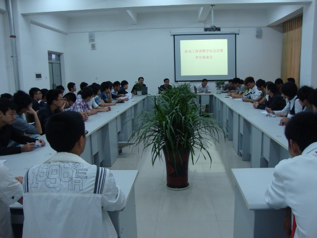本次会议内容包括三方面:对老师教学质量的看法、对学校规章制度的建议以及对学生自身情况的认识。该会议从各个方面全面的评价了学校的教学等方面不足之处。同学们纷纷在会上发言。他们在肯定机电系教师教学情况的同时,也根据各专业提出了同学们自己的看法和意见。