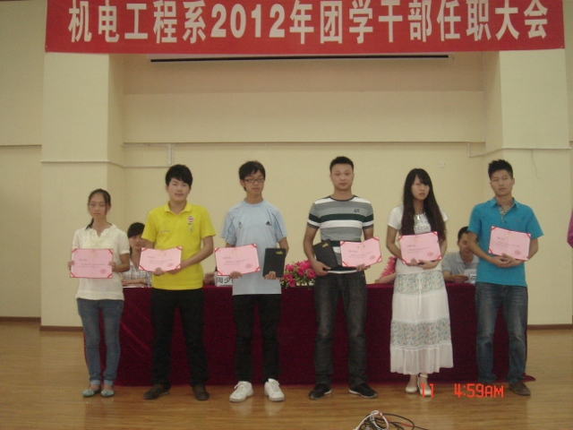 会议在齐唱团歌后,张书记对本期以来机电系团学会的工作进行了小结,对试用2个月的团学干部工作给予了肯定,对正式任职的团学会干部提出了要求希望。他希望本届干部能继承发扬机电系团学会的优良传统,将本系团学会工作推向新的高度,为我院在创建示范性高职学院中作出积极的贡献。学生党支部书记苑卉宣布了本届团总支学生会干部任职名单,同时颁发聘书。最后系团学会代表作了就职演讲。