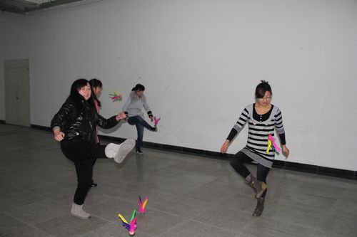 首先开始的是单人跳绳赛,2人一组,细细的跳绳在空中飞舞,有节奏地发出“嗖嗖”的声响。大家热烈的呐喊助威、加油声中,很多平时文静的女职工们都成了运动健将,大家各显其能,展现出轻快活泼的律动之美。接着是踢毽子比赛,毽子在大家脚上轻盈的上下跳动,彩色的羽毛在空中划出一一道美丽的弧线,脸上的那份对运动的专注让参赛女选手们更加的自信和美丽。