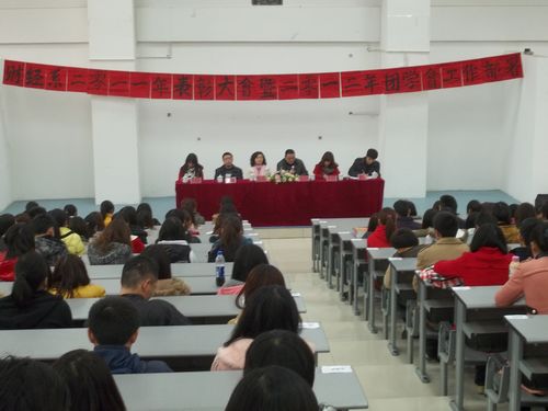 ,财经系团学会全体成员及各班班委干部在J2B101隆重集合,召开学生先进表彰暨团学工作部署会。财经系副主任杨柳、党总支副书记聂文俊等老师出席了此次大会。会上,聂文俊副书记作了热情的讲话,他对获奖者表示了衷心的祝贺。杨柳副主任宣布了上学年各个优秀奖获奖名单。获奖学生代表青柳君发表了获奖感言,她用真挚的语言表达了自己的获奖感想及今后的学习打算,表示一定认真学习,不断提高,争取以更好的成绩来回报学校老师的关爱。整个会场洋溢着喜悦,充满着希望和奋进。