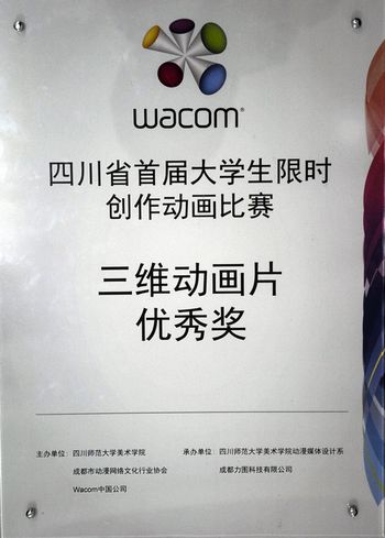 近日,由设计艺术系倪泰乐、韩佳琦带队的该系系学生团队参加了由四川师范大学、成都市动漫网络行业协会、wacom中国公司联合主办的四川省首届大学生限时创作动画比赛。在此次比赛中我院设计艺术系学生在三维动画片的创作中获得优秀奖,并将设计艺术系授权为wacom数字艺术教室,我院增添了殊荣。