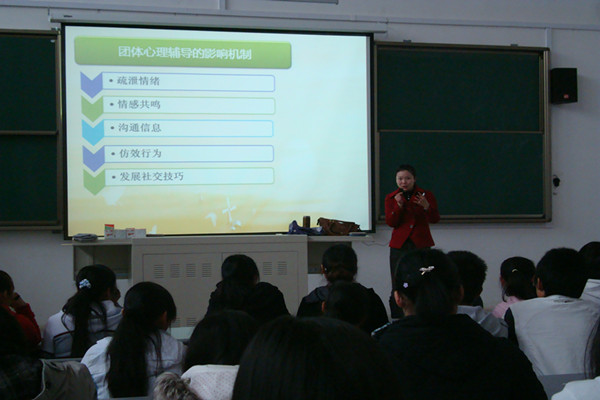 老师向受训员们讲述了朋辈心理辅导的特点、意义、形式和团体心理辅导的影响机制及辅导方案的设计,并对朋辈心理辅导员提出一些具体要求。