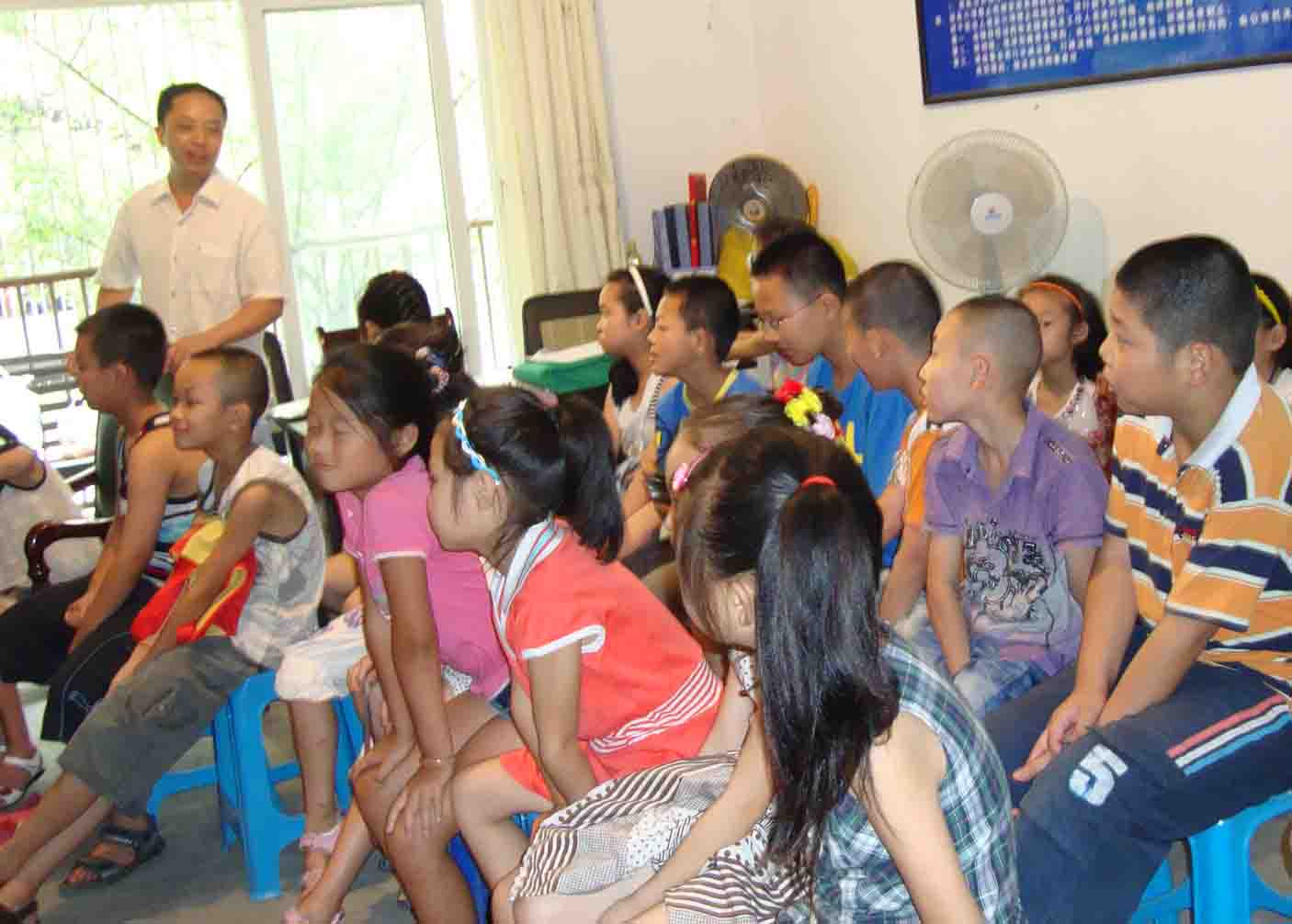 了解完我们队伍的工作情况后,张书记与小朋友们进行了交流,对他克服炎热天气坚持学习的精神表示赞扬。张书记祝愿小朋友们能健康快乐的成长,将来成为对国家有用的人。