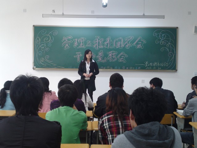 10月20日中午12:20,我院管理工程系团总支、学生会干部竞聘会在新校区J2C102教室举行。本次竞聘会由系党总支副书记聂文俊老师、系团总支书记肖媛媛老师、09级辅导员蔡松梅、王道辉老师以及系学生会主席简杨琴同学和系团总支副书记范琳琳同学到会并担任评委。管理工程系人才济济,本次竞聘选手个个充满激情与活力,站在台上自信、洒脱、落落大方,能深刻认识团委、学生干部职责,尽显管理系学生的风姿。祝愿新一届团学会干部在老师和上届干部的带领与帮助下茁壮成长,干出更优秀的成绩,在为同学服务的过程中不断提升自己。