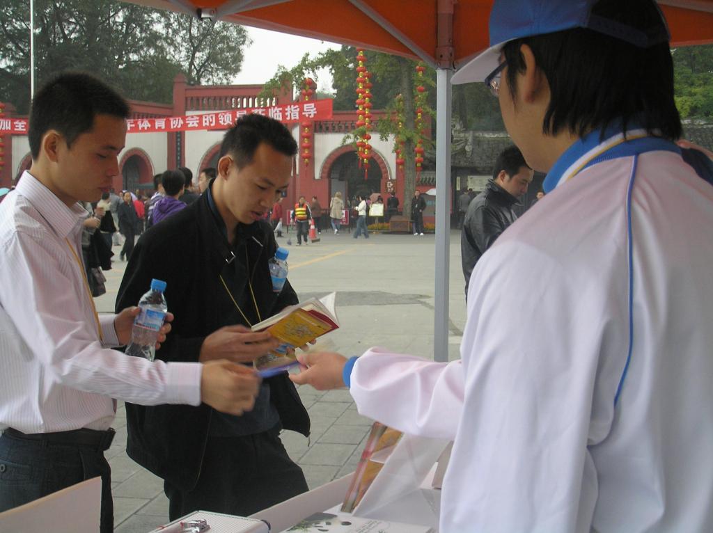 至20日在成都隆重举行。按照团市委相关工作部署与要求,我院18名志愿者在都江堰的“离堆公园”和“马踏飞燕”两个景点设立了西博会城市志愿者服务站,为西博会来宾、国内外媒体记者、观众、游客及广大市民提供信息咨询、应急服务、语言翻译等志愿服务等活动。志愿者们以忘我的热情、负责的态度、扎实的工作圆满完成志愿服务任务。