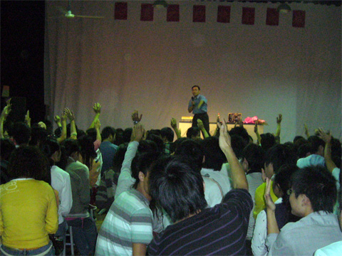 10月15日晚7点,加拿大籍华裔心理专家庄健先生携团队在我院农科职院教学点为数百名同学带来了题为“生命的意义”震后心理重建专题讲座。 庄健先生风趣幽默又热情洋溢的话语将现场的气氛推向一个又一个高潮。他说:“人生本来就是幸福的。我们对待人生,不是看你拥有的是什么,而是你的态度。态度决定一切。”
