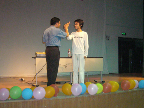 庄先生邀请其外国友人雷迪先生上台讲述了自己的故事。雷迪在十八岁时遭遇意外,失去双臂,凭借自身顽强的奋斗精神以及永不放弃的信念,终于完成学业,开创事业,重新过上美好幸福的生活。雷迪先生以其亲身经历,为同学们上了意义深远的一课,让同学们深切体会并反思了生命的意义究竟是什么。在雷迪先生讲述的过程中,同学们数次报以经久不息的掌声,并在讲座结束后,强烈要求签名留念。