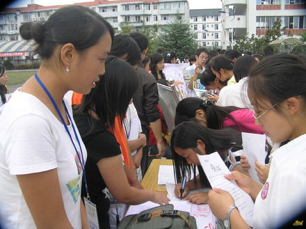(募捐活动) (禁毒宣传) (志愿客运中心) 在2007年9月21日社团新会员招聘会上,各新同学通过对心梦圆爱心社的了解,更是吸引、激发了他们的加入,表现了极高的热情,报名、面试现场一片火爆,无一空席,人数达到了220多人。在听说名额有限后,各同学更是不惜课余休息时间,坚持进4个小时参加该社团面试。   (火爆的报名现场)