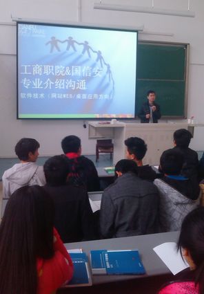 3月4日,为了让2012级信息工程系国信安企业定制班软件技术、软件技术两个专业的学生,更加了解目前整个成都IT产业的发展形势、软件产业对人才的需求,促进各位IT专业学生对自身专业的正确理解和认识,同时让合作班的学生更加了解国信安的企业文化、校企合作培养模式、就业保障等内容,成都国信安基地“企业定制班”项目负责人杨经理和职业服务中心的唐老师,来到学院J1C101教室面对面的与学生们进行了交流沟通,排除学生心中的各种疑问。