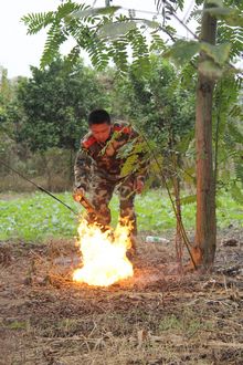 11月12日下午3时20分,保卫处和总务处联同都江堰市消防官兵对我院一号教室公寓对面两棵绿化树上的马蜂窝进行了清除,消除校园安全隐患。